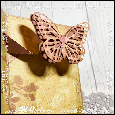 The recycled part of the card is the brown layer behind the butterfly. That is from some Tim Holtz stencil packaging.