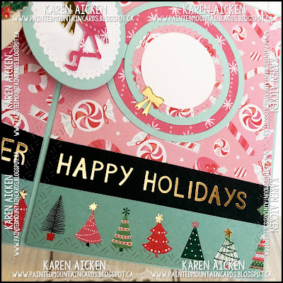 Today's share is a card I made for a couple that loves to spend time in Florida. I had picked up this 12 x 12" patterned paper pad at Michaels, and I have to say how much I'm enjoying it! Here I paired it with Karen Burniston's Circle Charm Pop-Up die set for a fun holiday card.