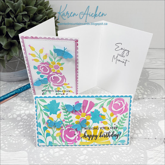 Today I'm sharing a trio of cards using layering stencils from Taylored Expressions. These ones actually create three Mini Slimline panels! I chose bright and happy colours, but want to try some soft pastels next.